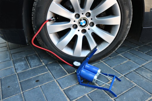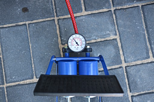 Dodatkowo pompka została wyposażony w gumowy oraz profilowany pedał, który ułatwia pracę.