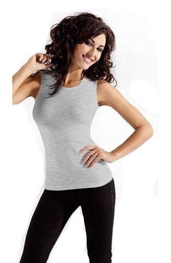 Klasyczny, jednokolorowy podkoszulek na szerokim ramiączku. Elastyczna, przyjemna w dotyku bawełna ładnie dopasowuje się do sylwetki. Model bardzo starannie wykonany. Podkoszulek przewiewny i bardzo wygodny, doskonale podkreśla kobiece kształty.