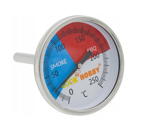 Solidnie wykonany termometr ze stali nierdzewnej. Termometr idealnie sprawdza się podczas mierzenia temperatury w procesie wędzenia w wędzarni czy grillowania w grillu (zarówno metodą bezpośrednią jak i pośrednią). Czujka termiczna znajduje się w obszarze między 1.3 cm a 5 cm od początku szpikulca.