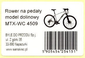 Nalepka z kodem kreskowym i informacjami tekstowymi oraz rysunkiem.