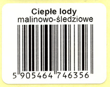 Etykieta z kodem kreskowym na opakowanie w celu oznaczenia towaru symboliką kodu z możliwością zamieszczenia krótkiej informacji tekstowej - np. nazwy lub symbolu produktu.