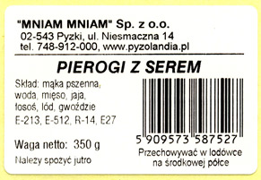 Naklejka z informacją tekstową. Często stosowana gdy na opakowaniu należy umieścić tłumaczenie składu produktu, dodatkowe informacje lub inny opis.