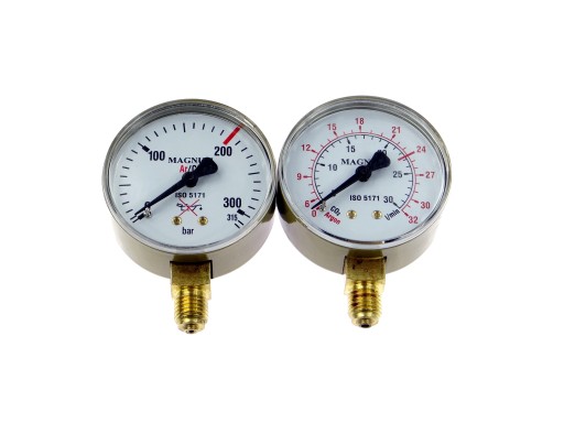 Komplet 2 szt manometrów [manometr butlowy oraz roboczy],przeznaczony do reduktora Argon/CO2. Manometry pasują do większości reduktorów sprzedawanych na Polskim rynku. Maksymalne ciśnienie wlotowe i wylotowe oznaczone są na manometrach czerwona kreską.