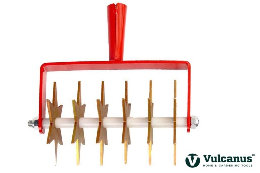 Kultywator VULCANUS jest niezwykle wytrzymały i odporny na uszkodzenia mechaniczne. Został wykonany z wysokogatunkowej stali, który gwarantuje jego żywotność przez długie lata. Produkt wyposażony jest w 6 gwiazdek spulchniających, rozmieszczonych względem siebie w równych odstępach co 3cm.