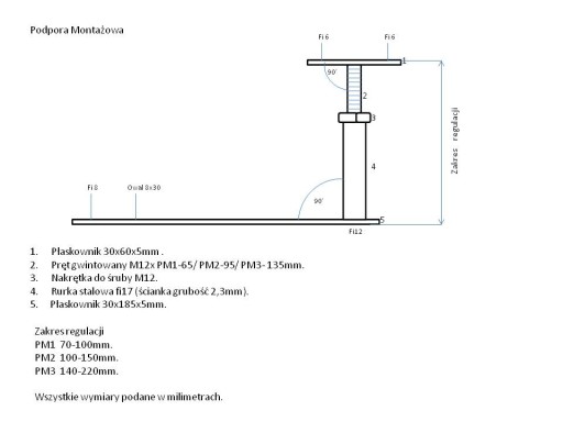 - Podpora montażowa PM1- zakres regulacji 70-100mm.