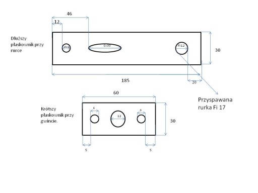 - Płaskownik 60x30x5mm. z dwoma otworami Fi6 do montażu w profilu okiennym i przyspawanym prętem gwintowanym M12