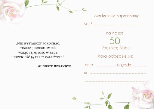 Wzór przedstawia zaproszenie na 50 rocznicę ślubu, jednakże jest możliwość wpisania innej rocznicy.