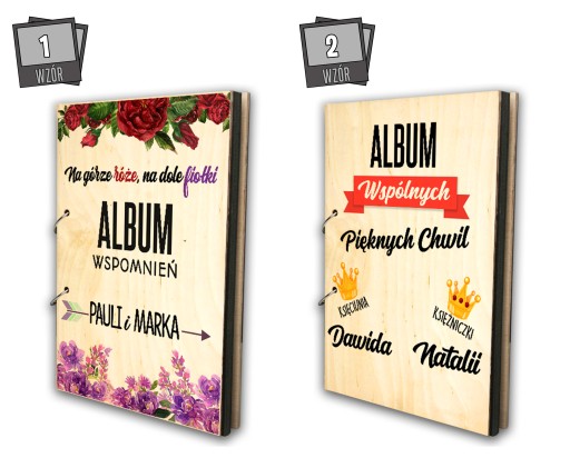 DREWNIANY ALBUM na zdjęcia z PERSONALIZOWANYM NADRUKIEM
