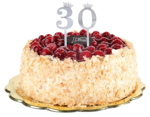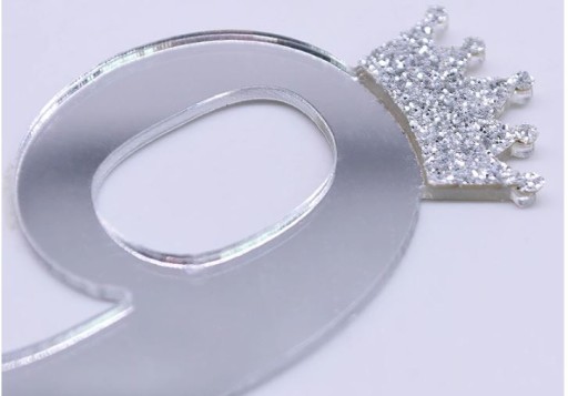 Topper urodzinowy srebrny z brokatową koroną. Stylowa dekoracja na tort. Niezbędny gadżet na urodziny oraz rocznice zarówno dla dzieci jak i dorosłych.