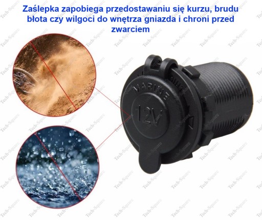 - Dołączona zaślepka czyni gniazdo odpornym na kurz brud czy wodę.