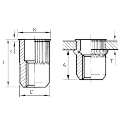ГАЙКА-КЛЕПКА СТАЛЬНАЯ M8 КОНУСНАЯ ОЦИНКОВАННАЯ 1,6-5,0 100ST