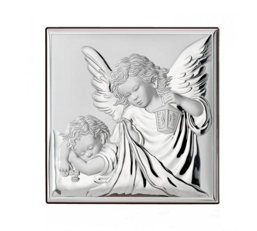 Obrazek SREBRNY Anioł Stróż nad dzieciątkiem 8x8cm
