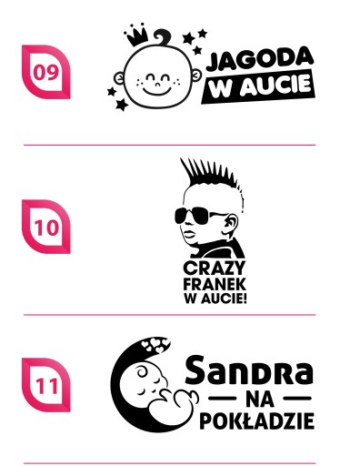 Mamy dla Was coś specjalnego. Personalizowaną naklejkę na samochód z imieniem Twojego dziecka. Niech nikt już nie ma wątpliwości kto jest na pokładzie.