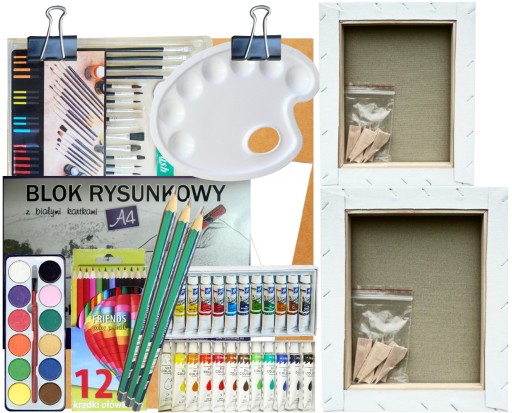 DUŻY ZESTAW DO MALOWANIA RYSOWANIA SZKICOWANIA 77 ELEMENTÓW