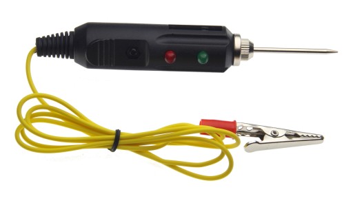 Samochodowy próbnik napięcia 6V-12V-24V DC i ciągłości obwodu z przewodem zakończonym krokodylkiem.