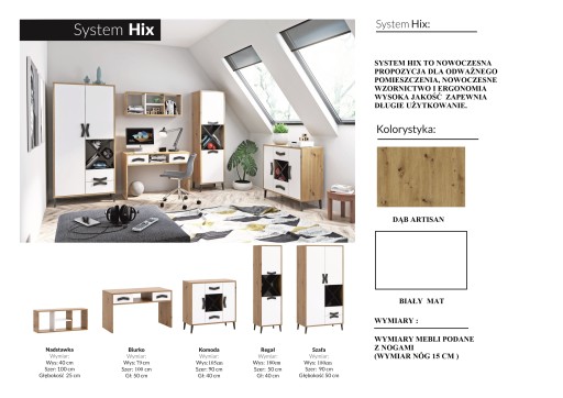 SYSTEM HIX WYKONANY JEST Z WYSOKIEJ JAKOŚCI PŁYTY ME-LAMINOWANEJ O GRUBOŚCI 16 MM ,OKLEJONE OBRZEŻEM ABS ODPORNEJ :