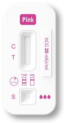 - Test ciążowy Pink to łatwe w użyciu i dokładne narzędzie, które pozwala przeprowadzić kobietom podejrzewającym ciążę szybkie badanie diagnostyczne - a wszystko to przy zachowaniu komfortu i pełnej prywatności. Za pomocą testu sprawdzamy stężenie hormonu hCG, który pojawia się w moczu kobiet w ciąży. Czułość diagnostyczna testu to 25mIU/ml, a jego dokładność wynosi aż 99.9%.
