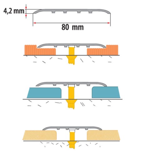 - Listwa przeznaczona do łączenia powierzchni o niezróżnicowanej wysokości. Stanowi estetyczne wykończenie paneli, terakoty oraz wykładzin dywanowych zapobiegając potykaniu się o wystający brzeg