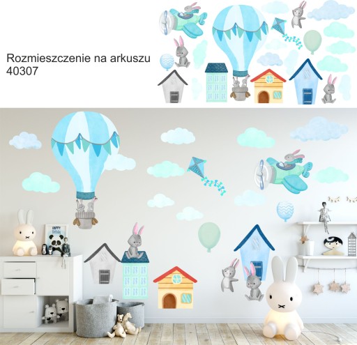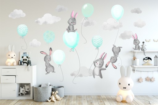 Naklejki dla dzieci na ścianę króliki BALONY 200