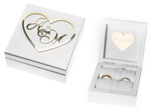 Po otwarciu pudełeczka ukazuje się lustrzane serduszko z wygrawerowaną datą ślubu. Serduszko umieszczone jest po wewnętrznej części wieczka.