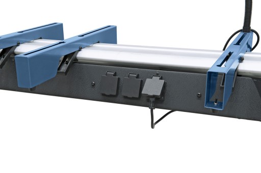 - Podpora rolek z możliwością bezstopniowego wyciągania i regulacji wysokości po obu stronach