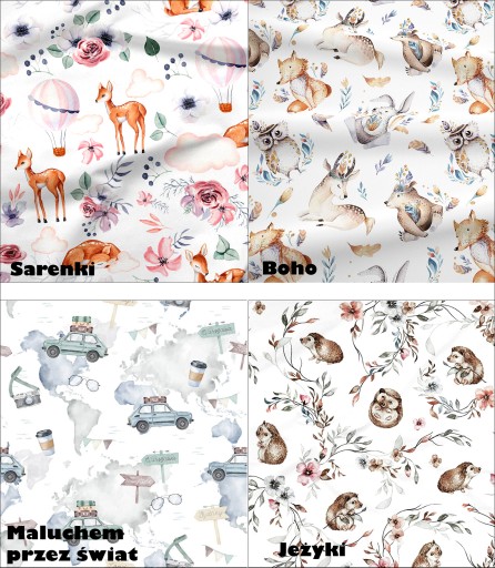 - Tkaniny PREMIUM posiadają wysoką jakość nadruku cyfrowego, co sprawia że wzory mają intensywną barwę i takie pozostają nawet po wielokrotnym praniu. Nie mechacą się i nie kurczą po praniu. Są one również delikatniejsze dla skóry maluszka od klasycznej bawełny.