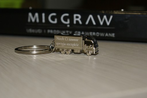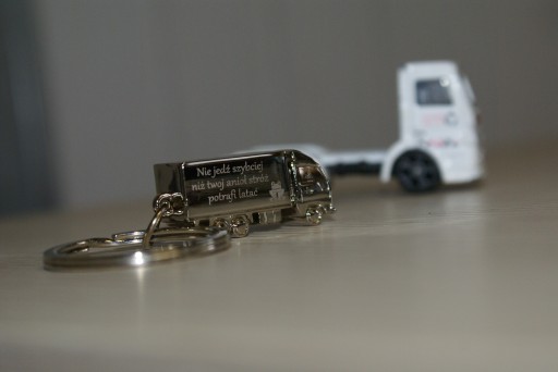 Na tej aukcji oferuje wykonanie logo, napis, grawer na breloku metalowym ciężarówka. Brelok wykonany z chromowanego metalu, pakowany w elegancki czarny kartonik. Brelok jest to miniaturka TIRa, o unikalnym trójwymiarowym kształcie, 3D , wyjątkowo wiernie odzwierciedla detale prawdziwych ciężarówek.