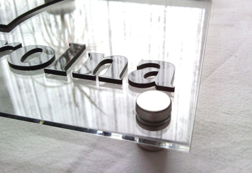 Tabliczka zaopatrzona jest w cztery dystanse ze stali nierdzewnej ułatwiające przymocowanie tabliczki, a jednocześnie sprawiają że tabliczka jest bardzo elegancka.