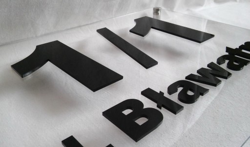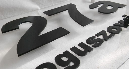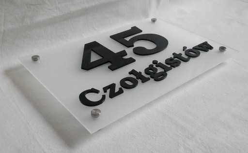 Tabliczka została wykonana z wysokiej jakości szkła akrylowego o łącznej grubości 6mm (3mm podkład + 3mm litery i cyfry).