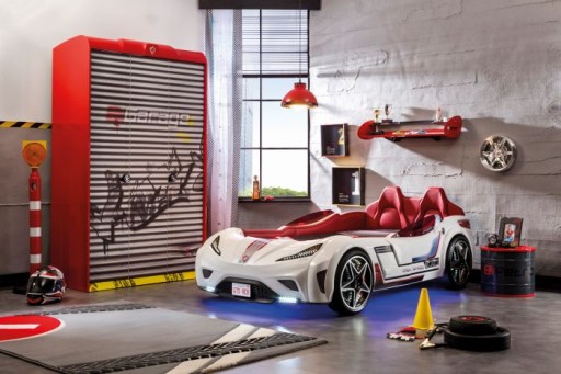 Przedmiotem sprzedaży jest fantastyczne łóżko w kształcie auta GTS w kolorze białym.