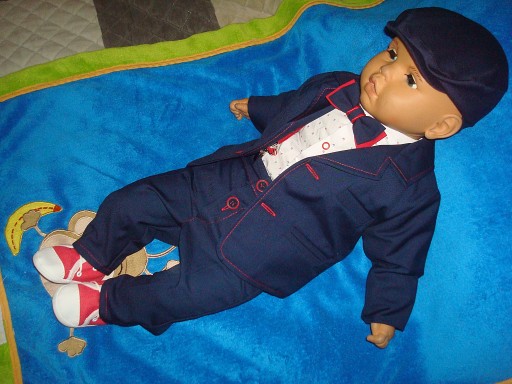 - SPODNIE GRANATOWE Z CZERWONĄ NITKĄ TYPU SLIM W KANCIK GUMKA W PASIE DO WYBORU Z GUZICZKAMI LUB BEZ