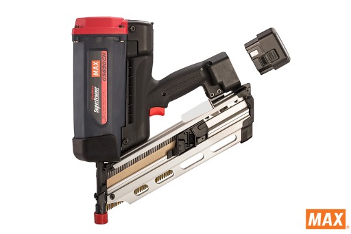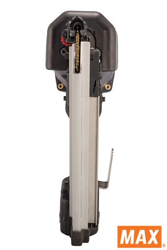 Konstrukcyjna gazowa gwoździarka MAX GS690CH, jest narzędziem do wbijania gwoździ połączonych taśmą papierową.