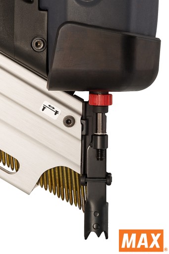 Posiada proste zapadkowe pokrętło służące do regulacji głębokości wbijanych gwoździ.
