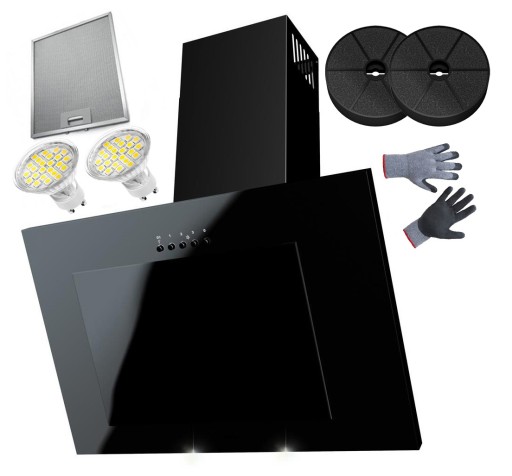 ЧЕРНАЯ КУХОННАЯ ВЫТЯЖКА, СТЕКЛО, СВЕТОДИОД, 60СМ, ФИЛЬТР