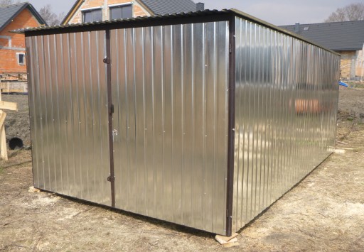 Garaż blaszany wykonany z blachy w II gatunku idealnie sprawdzi się na budowie, mogą wystąpić zagniecenia lub przebarwienia blachy.