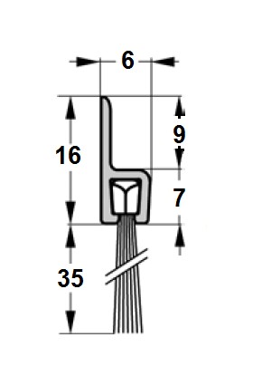 Uszczelnienie szczotkowe do drzwi i bram, na profilu prostym "h", L-1000mm. Wysokość włosia: 35 mm