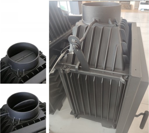 Umożliwia regulację ciągu komina, co wpływa na efektywniejszy proces spalania. Regulacja jest możliwa za pomocą gałki.