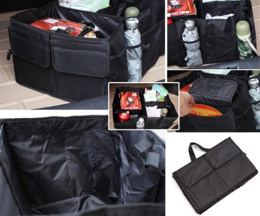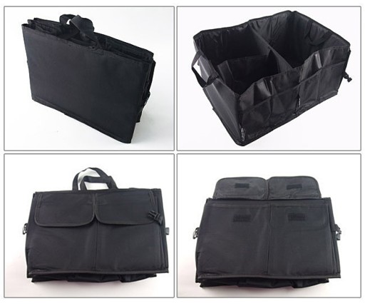 Uniwersalny organizer do samochodu. Organizer zabezpiecza oraz porządkuje rzeczy znajdujące się w samochodowym bagażniku. Posiada praktyczne kieszenie wykonane z siatki i kieszonki zapinane na rzepy. Jest idealny do przechowywania różnego rodzaju przedmiotów w twoim samochodzie tj: napoje, zakupy, zabawki dziecka oraz inne drobiazgi.Organizer możesz rozłożyć tylko wtedy kiedy jest potrzebny a po zakończeniu użytkowania złożyć go do niewielkich, kompaktowych rozmiarów tak aby zajmował jak najmniej miejsca i wyglądał jak cienka torba na tablet.