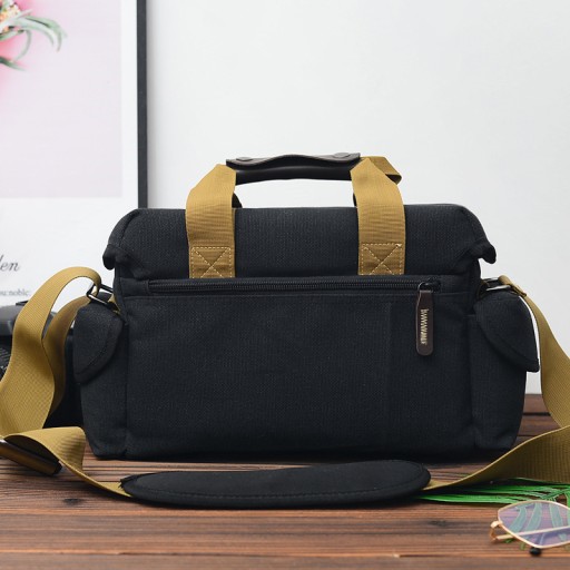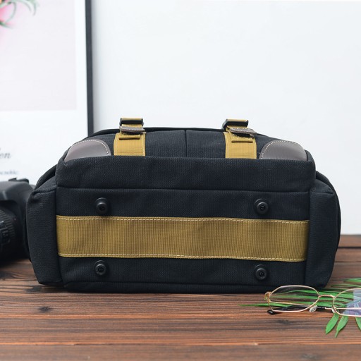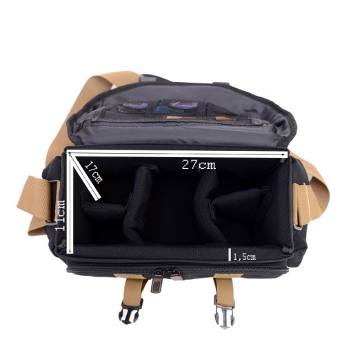 Torba pomieści średniej wielkości aparat wraz z akcesoriami, takimi jak: