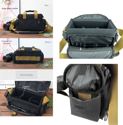 Dzięki wyjmowanej przegrodzie główną komorę można dowolnie regulować . Kieszenie doskonale nadają się do przenoszenia podstawowych akcesorii, takich jak: ładowarka, dodatkowe baterie, filtry, karty pamięci itp.