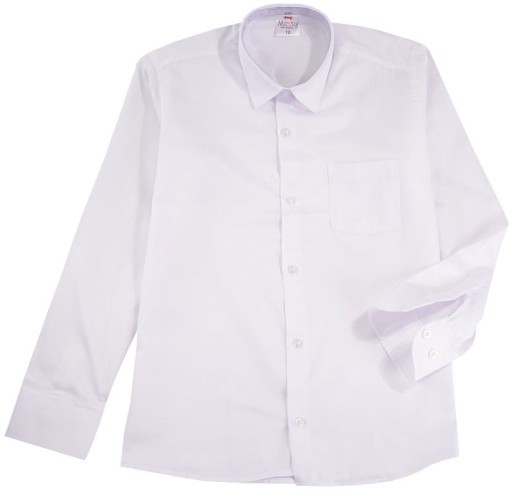 Koszula z długim rękawem, śnieżnobiała, wizytowa, klasyczny fason. Zapinana na guziki, zapakowana w oryginalne opakowanie producenta.