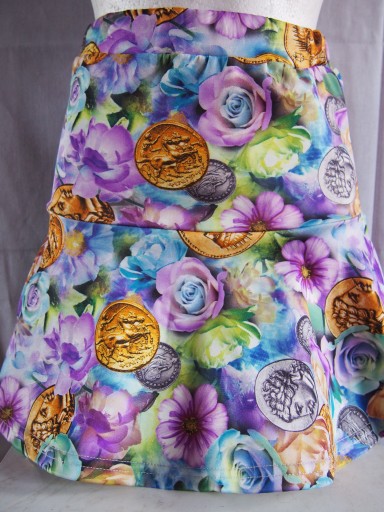 MINI SPÓDNICZKA W KWIATKI I MONETY KOL.FIOLETOWY