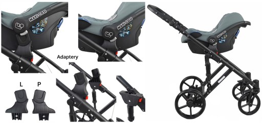 Adaptery umożliwiają wpięcie w ramę (stelaż) tego wózka następujące foteliki: