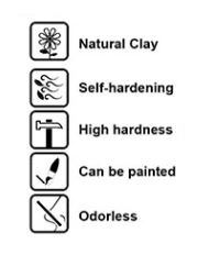 Prezentowaną masę utwardza się na wolnym powietrzu. Nie wymaga wypalania. Czas schnięcia, w zależności od grubości warstwy, do kilku dni. Wyschniętą glinkę można szlifować, obrabiać papierem ściernym, ciąć, wiercić, malować i lakierować. Może być ona malowana każdym rodzajem farb, w zależności od oczekiwanego efektu. Glinka ta świetnie nadaje się do robienia wycisków z różnego rodzaju foremek, również silikonowych. Jest zupełnie bezwonna.