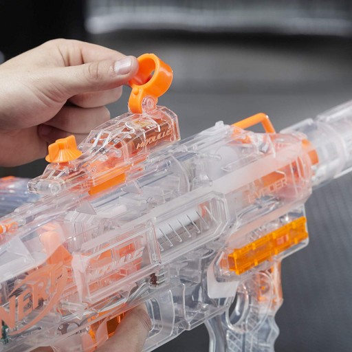 Dzięki zestawowi Reflective Targeting Kit możesz ulepszyć swój blaster Nerf Modulus Ghost Ops. W skład zestawu wchodzi regulowany celownik, który zawiera diodę LED oraz dwa cele. Celownik mocuje się do szyny taktycznej. Po włączeniu celownik wysyła wiązkę światła, która oświetla cele. Celownik może zostać dołączony do każdej wyrzutni Nerf, która posiada szynę taktyczną.