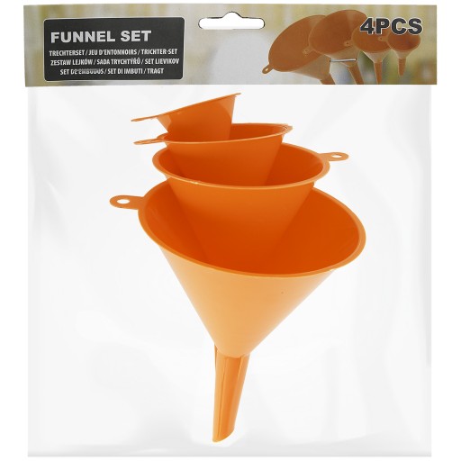 Zestaw lejków pozwoli ci na bezproblemowe wlanie/przelanie substancji takiej jak ,paliwo, olej,woda itp