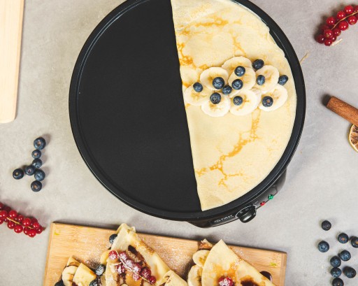 Patelnia została wyposażona w pokrętło regulacji temperatury, dlatego możesz decydować jak szybko naleśniki się zarumienią.