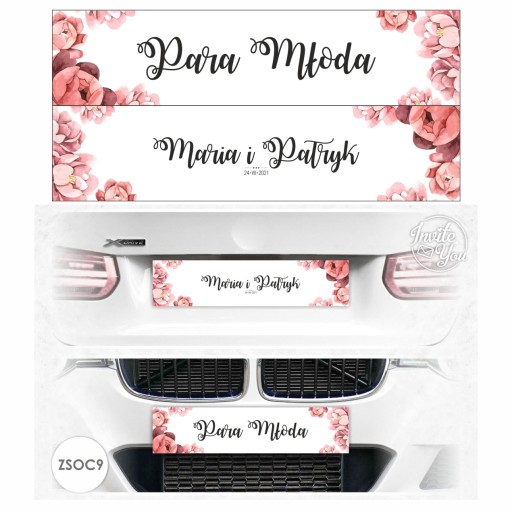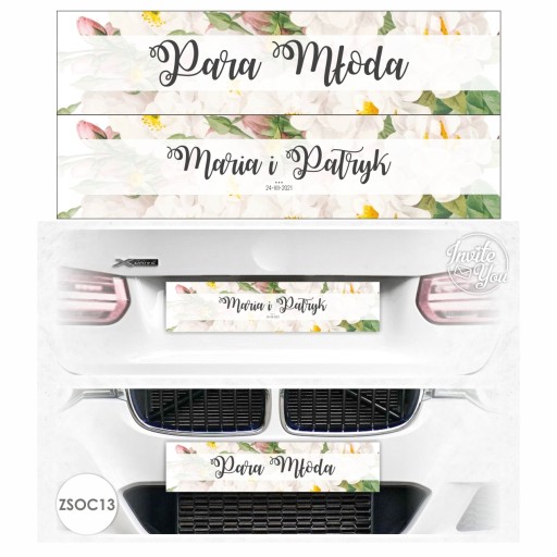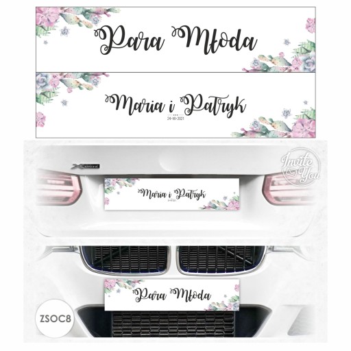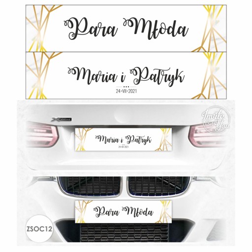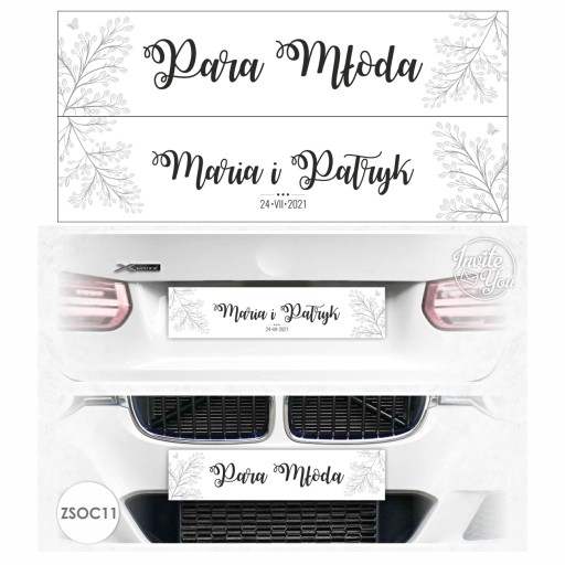 IMIENNE SAMOCHODOWE WESELNE TABLICE DEKORACYJNE (w miejsce tablic rejestracyjnych) - PERSONALIZOWANE