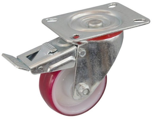 Na tej aukcji oferujemy kółka poliamidowo -poliuretanowe w obudowie obrotowej z hamulcem mocowanej na cztery śruby stosowane w wózkach magazynowych oraz transportowych.