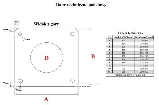 - Średnica otworu : 200mm